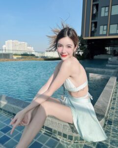 ใส่ชุดว่ายน้ำสีส้มตัวเล็กมาก ยืนถ่ายแบบ ริมสระว่ายน้ำ เห็นน้องในชุด ทูพีช หวานบางกรอบแบบนี้ใครชอบบ้างให้ยกมือขึ้นน่ารักมาก ยิ่งตอนทำหน้างอน ด้วยยิ่งน่ารักไปอีก เจอหน้าอ้อนแบบนี้ ขออะไรเราก็ให้แล้วนะพูดเลย (จะบอกว่าในคอนเทนต์เห็นเพื่อนน้องมาถ่ายด้วยกัน ก็งานดีนะ เดี๋ยวขอติดไว้ก่อน จะหา วาร์ป ให้ทีหลัง) ยังไม่หมดแค่นั้น